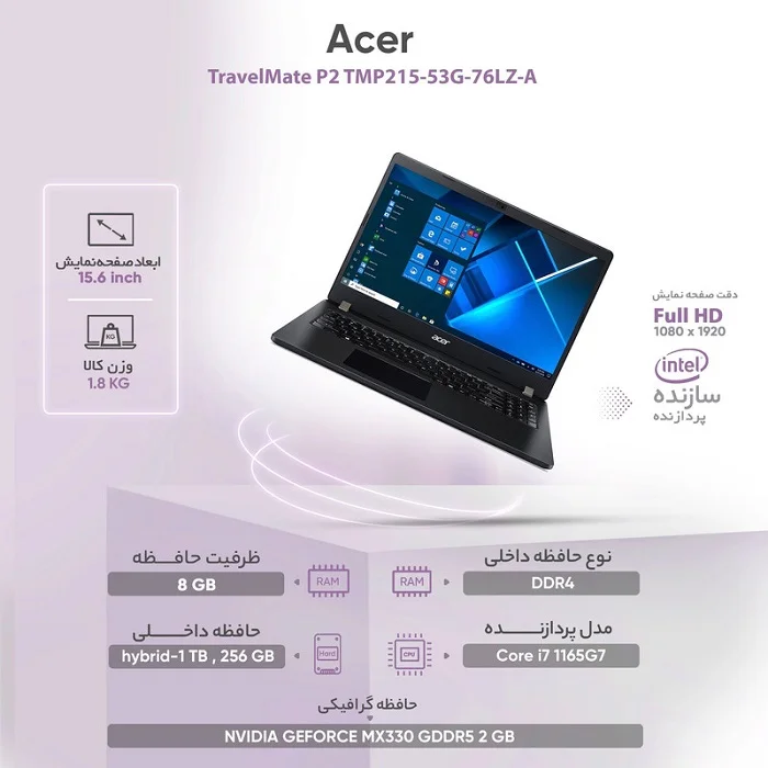 لپ تاپ 15.6 اینچی ایسر مدل TravelMate P2 TMP215-53G-76LZ-A