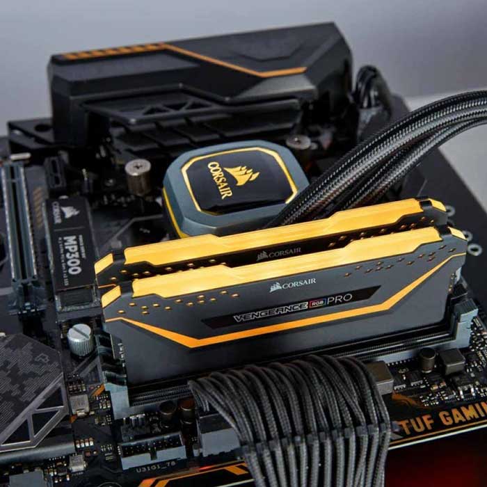 رم دسکتاپ مدل Vengeance RGB Pro TUF Edition محصولی از شرکت کورسیر (Corsair) است. ظرفیت این محصول 32 گیگابایت به صورت دوکاناله با فرکانس 3200 مگاهرتز و تایمینگ CL16 می باشد. همچنین این حافظه، از نوع DDR4 است که در مقایسه با DDR3 سرعت بیشتر، نرخ انتقال بالاتر و تولید گرمای کمتری دارد. رم های اورکلاک شده VENGEANCE RGB PRO TUF Edition ، نه تنها دارای عملکرد بالا بوده بلکه میتوانند با سیستم نورپردازی خیره کننده خود نمای چشمگیری به سیستم شما ببخشند. نرم افزار قدرتمند CORSAIR iCUE این امکان را به شما میدهد تا سیستم نورپردازی RGB را با قطعاتی نظیر حافظه، فن ها، نوار نوری LED، کیبورد، موس و … هماهنگ کرده و بتوانید کامپیوتری با ظاهری شیک و زیبا برای خود به وجود آورید. شما میتوانید ده ها پروفایل نوری پیش ساخته را با تنوع رنگی بالا و نورهایLED قابل تنظیم ساخته و سیستم خود را به بهترین شکل ممکن نورپردازی و شخصی سازی کنید.
