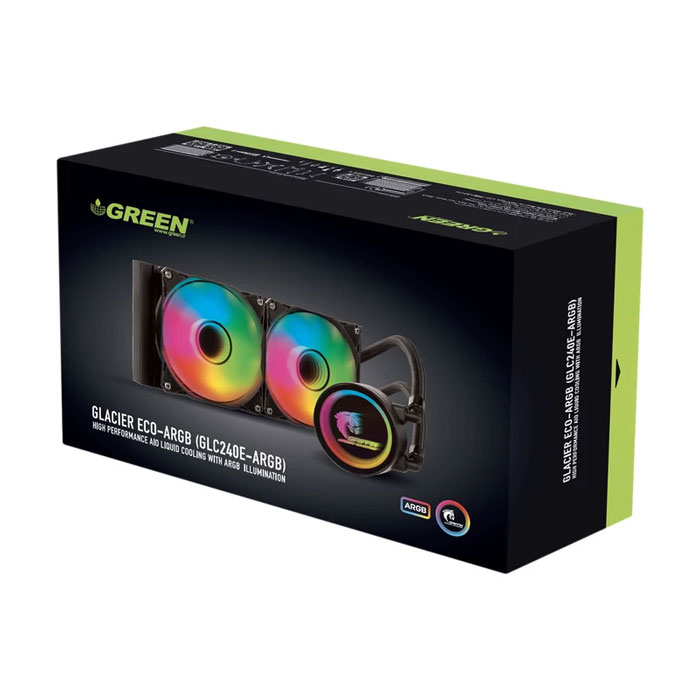 سری GLACIER ECO-ARGB اقتصادی ترین مدل های نسل دوم خنک کننده های آبی (واترکولینگ) گرین به گونه ای طراحی شده اند تا علیرغم نویز صوتی کمتر فن ها و پمپ، کارایی و دوام به مراتب بیشتری نسبت به نسل قبل داشته باشند. پمپ به مراتب قدرتمندتر و بی صداتر با کارایی 2 برابر بهتر از نسل قبل در کنار یاتاقان Copper Bearing، فن های فوق العاده بادوام از نوع Rifle Bearing با عمر متوسط بیش از 160,000 ساعت، لوله های 3 لایه با روکش بافته شده و آب بندی در کلاس صنعتی، واتربلاک مسی با طراحی پیشرفته 0.14mm Micro Channel و نورپردازی ARGB با جلوه آینه بی نهایت (Infinite Mirror)، قابلیت همگام سازی با مادربرد (MB Sync) در کنار پشتیبانی از تمامی سوکت های مدرن پردازنده، تنها بخشی از ویژگی های ممتاز نسل جدید خنک کننده آبی گرین محسوب می شوند.