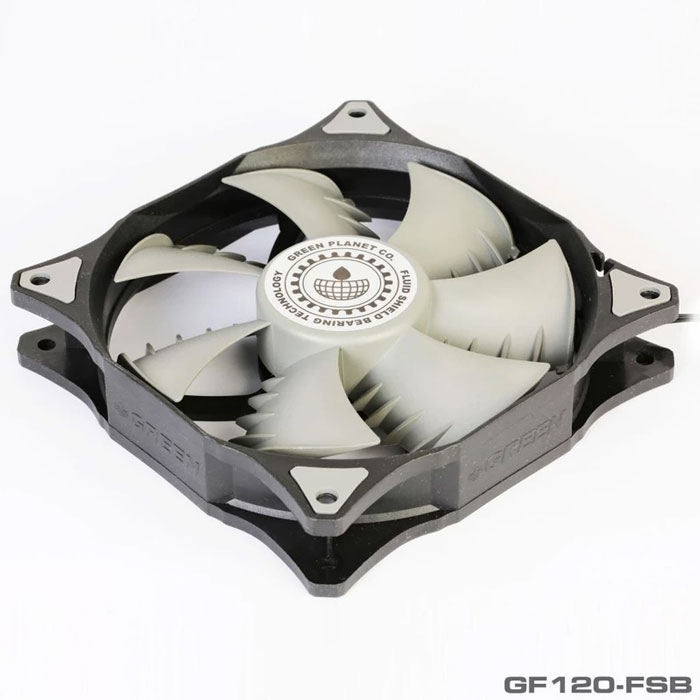 فن کیس «GF120-FSB» از برند «گرین» (Green)، از نوع 120میلیمتری است که گاهی اوقات با اسم 12سانتیمتری هم از آن یاد میشود. این فن با استفاده از ترکیب دو رنگ مشکی و توسی تولید شده است و برای خنککردن محیط داخلی کیسهای کامپیوتری کاربرد دارد. در دو طرف فن و در محلهای عبور پیچها و اتصال به بدنهی کیس، از پدهای سیلیکونی استفاده شده است. این پدها لرزش را بهخوبی جذب میکنند و مانع ایجاد سروصدای ناشی از گردش فن میشوند. در طراحی هستهی فن، از فناوری Fluid Shield Bearing استفاده شده که نویز حرکتی موتور در آن بسیار کم است و اصطکاک کمی مابین میلهی چرخنده و هستهی خود دارد. همین موضوع باعث شده تا طول عمر فن GF120-FSB از 100 هزار ساعت بیشتر باشد. پرهی فن GF120-FSB بهسادگی از محل خود جدا میشود و میتوانید بدون دردسر، نسبت به تمیزکردن آن اقدام کنید. در طراحی پرهها از الگوی بال کوسه استفاده شده است. در این طراحی، زائدههایی در انتهای پرهها مشاهده میشود که علاوهبر زیباترکردن فن، عملکرد آن را هم بهبود میدهد. این زائدهها میزان جریان هوا را افزایش میدهند و فشار استاتیک فن را بهبود میبخشند. سرعت چرخش این فن ثابت و 1100 دور بر دقیقه است.