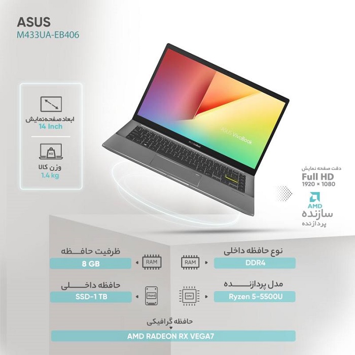 لپ تاپ 14 اینچی ایسوس مدل M433UA-EB406