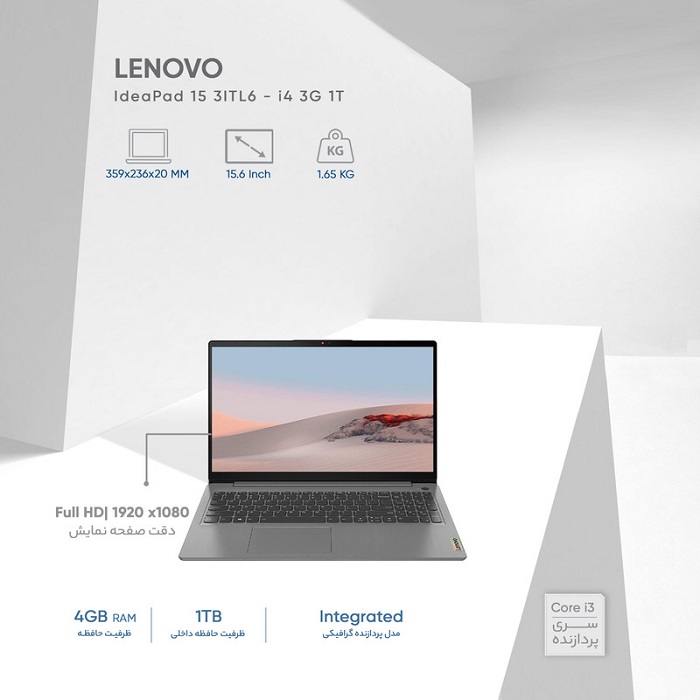 لپ تاپ 15.6 اینچی لنوو مدل IdeaPad 3 15ITL6 – i3 4G 1T