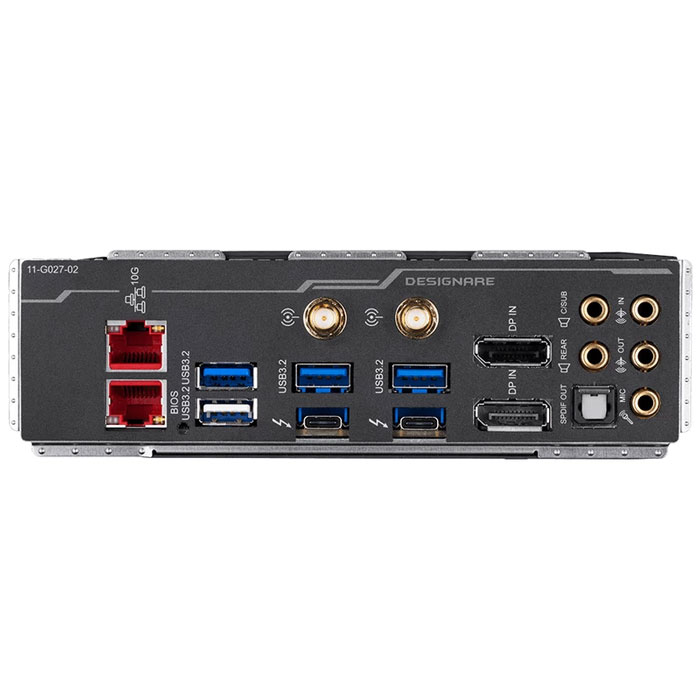 ۲ عدد DisplayPort In port ۲ عدد Thunderbolt ۳ connectors (USB Type-C ports, with USB ۳.۲ Gen ۲ support) ۲ عدد SMA antenna connectors (۲T۲R) ۴ عدد USB ۳.۲ Gen ۱ port ۲ عدد RJ-۴۵ port ۱ عدد optical S/PDIF Out connector ۵ عدد audio jacks