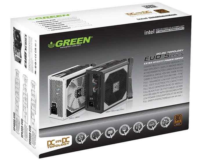 منبع تغذیه (پاور) «GP580A-EUD» محصولی از برند «گرین» (Green) است. این پاور دارای حداکثر توان 580 وات است و از نوع نیمه ماژول بهحساب میآید. در پاور GP580A-EUD شاهد استاندارد 80Plus Bronze هستیم که معنای آن، بازده 85درصدی محصول تحت شرایط رایج است. یک عدد فن 120میلیمتری روی پاور نصب شده که از نوع بسیار کمصدای SNTC است و میتواند دمای منبع تغذیه را در شدیدترین فشار کاری هم تا 40 درجهی سانتیگراد نگه دارد. شرکت گرین از خازنهای باکیفیتی در ساخت این محصول استفاده کرده است که باعث میشود GP580A-EUD بتواند خروجی پایداری را در کانکتورهای برق ارائه دهد. کابلهایی که از این پاور خارج میشوند از نوع تخت (Flat) هستند که دوام و طول عمر مطلوبی را برای این پاور به همراه دارد. گفتنی است 6 عدد کانکتور 15 پین SATA و 2 عدد کانکتور 6+2 پین گرافیک برای این محصول شرکت گرین در نظر گرفته شده است. پاورها وظیفهی تأمین انرژی موردنیاز برای قطعات مختلف کامپیوتر را برعهده دارند. شرکت گرین از تولیدکنندگان بسیار خوب پاورهای کامپیوتر است. این شرکت محصولاتی برای استفادههای حرفهای تا روزمره را تولید میکند و قیمت محصولاتش نسبت به سایر رقبا کمتر است.