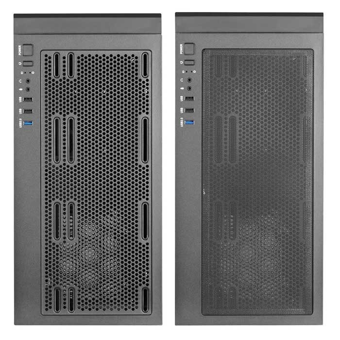 باز شدنِ پنل جلو بدون نیاز به ابزار باز کردنِ پنل چپی بدون نیاز به ابزار برآمدگی در پنلهای کناری جهت افزایش مقاومت پنل برآمدگی در قسمت فن پشتی جهت جمع نشدنِ گرد و غبار و گردش هوای بهتر برآمدگی و فرورفتگی در محل قرارگیری مادربرد جهت مقاومسازی سینی بُرّنده نبودنِ لبههای داخلیِ کیس پشتیبانی از واتر کولینگ تا ارتفاع ۶۰ میلیمتر دارای جایگاه درایو ۳.۵ اینچی با قابلیت نصب فن جهت خنکسازی هارد دارای رنگ کورهای آنتی استاتیک دارای سوراخهایی در پنل چپی جهت گردش هوای بهتر دارای سوراخهایی در پنل راستی جهت گردش هوای بهت دارای کابلهای باکیفیت برای پنل کیس دارای لرزشگیر در زیر پایههای کیس فن کاملاً بیصدا LED روشن بودن سیستم LED وضعیت فعالیت هارد دیسک پورت خروجی هدفون پورت ورودی میکروفون دو عدد پورت USB ۲ کلید خاموش و روشن کردن سیستم کلید ریستارت سیستم یک عدد پورت USB ۳