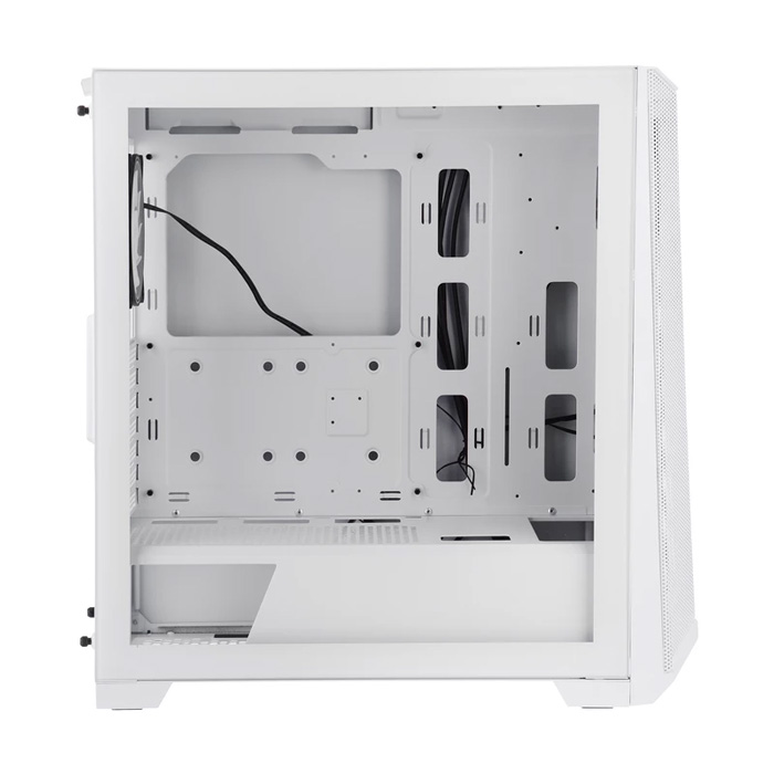 یک عدد فیلتر پلیمری با طراحی مش و قابل شستشو در پایین یک عدد فیلتر پلیمری و آهنربایی با طراحی مش و قابل شستشو در بالا باز شدنِ پنل جلو بدون نیاز به ابزار باز کردن پنل راستی بدون نیاز به ابزار باز کردنِ پنل شیشهای بدون نیاز به ابزار برآمدگی و فرورفتگی در محل قرارگیری مادربرد جهت مقاومسازی سینی بُرّنده نبودنِ لبههای داخلیِ کیس دارای پرهها با طراحی بالهی کوسه در فنهای از پیش نصب شده دارای رنگ کورهای آنتی استاتیک دارای کابلهای باکیفیت برای پنل کیس دارای هاب فن فنهای کاملاً بیصدا نصبِ بدونِ ابزارِ درگاههای توسعه نصب درایو ۲.۵ اینچی در براکت بدون نیاز به ابزار نصب درایو ۳.۵ اینچی در براکت بدون نیاز به ابزار LED روشن بودن سیستم LED وضعیت فعالیت هارد دیسک پورت خروجی هدفون پورت ورودی میکروفون دو عدد پورت USB ۲ کلید LED / ریستارت سیستم کلید خاموش و روشن کردن سیستم یک عدد پورت Type-C یک عدد پورت USB ۳