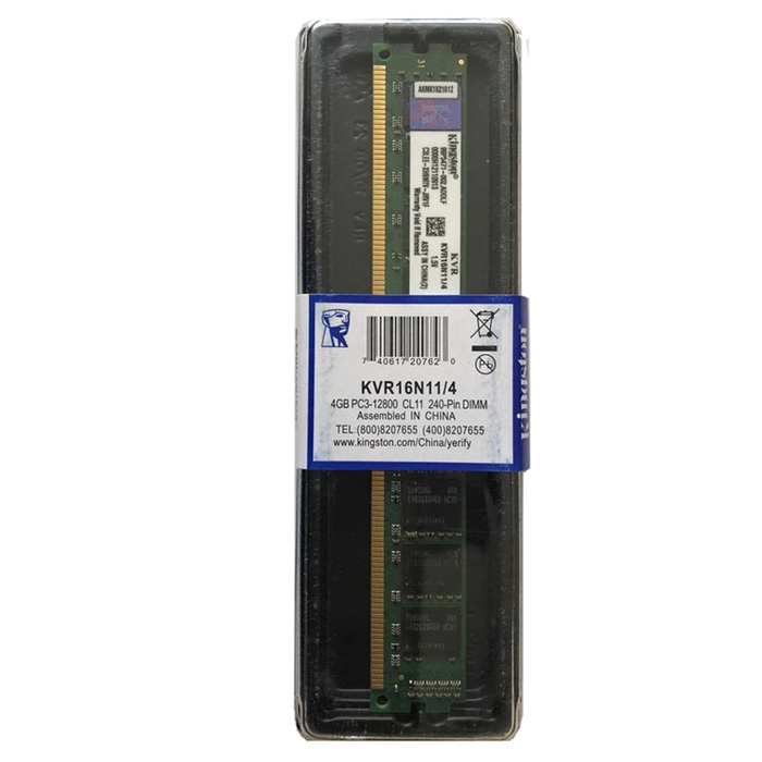 رم دسکتاپ DDR3 تک کاناله 1600 مگاهرتز CL11 کینگستون مدل KVR16N11/4 PC3-12800 ظرفیت 4 گیگابایت
