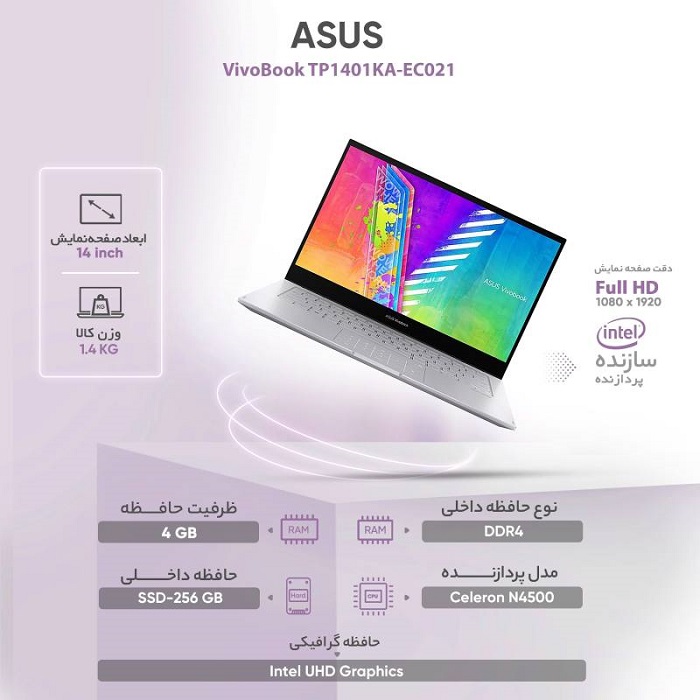 لپ تاپ 14 اینچی ایسوس مدل VivoBook TP1401KA-EC021